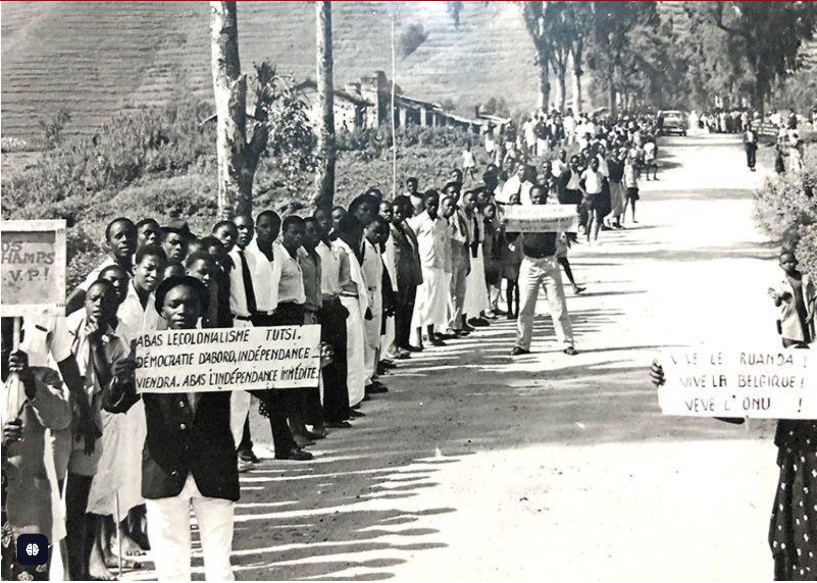 In this photo, the young man’s predecessors are seen brandishing a poster saying: “We do not need independence. Just help us get rid of the Tutsi”. The photo was taken in 1959, in Gitarama.